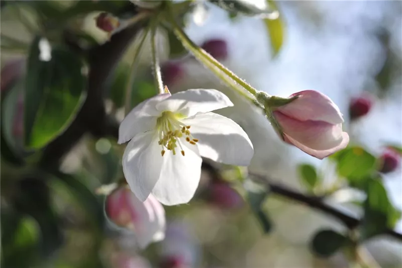 Apfelbäume benötigen andere Apfelsorten als sogenannte Befruchter. Hierfür eignen sich viele Apfelsorten, die zur selben Zeit blühen. In vielen Fällen befinden sich weitere passende Apfelbäume in Nachbargärten der Umgebung. Möglich sind auch Zieräpfel als Befruchter oder sogenannte Familienbäume. Als Familienbaum bezeichnet man spezielle Veredelungen, bei denen mehrere Apfelsorten in einem Apfelbaum kultiviert sind. Baumschulen bieten zum Beispiel veredelte Familienbäume an, bei denen eine Sommerernte, Herbstäpfel und spät im Jahr Winteräpfel eingefahren werden können. Ein Befruchter ist bei Familienbäumen nicht notwendig. Einen neuen Apfelbaum pflanzt man am besten im Herbst, ab Oktober. Dieser Pflanzzeitpunkt garantiert, dass die Bäume bis zum Frühjahr ausreichend starke Wurzeln bilden können. Das Pflanzloch sollte aufgelockert und mindestens doppelt so groß sein, wie der Wurzelballen des Apfelbaums.