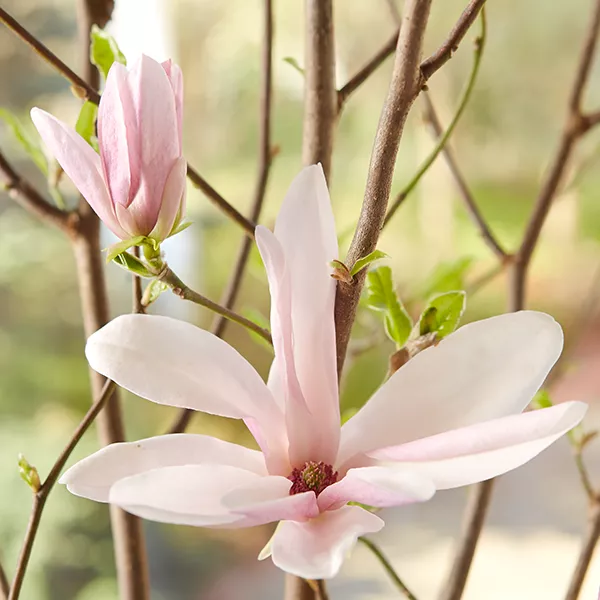 Die Kobushi-Magnolie (Magnolia kobus) ist auch als Baum-Magnolie bekannt und wird bis zu 10 m hoch. Auch sie präsentiert vor dem Austrieb der Blätter im April ihre bis zu 10 cm großen weißen Blüten. Deren Außenseite hat einen zartrosa Schimmer. Sie kann an einem sonnigen bis halbschattigen Standort gut in Einzelstellung gepflanzt werden. Je windgeschützter sie steht, desto mehr zeigt sie ihre Blütenpracht.