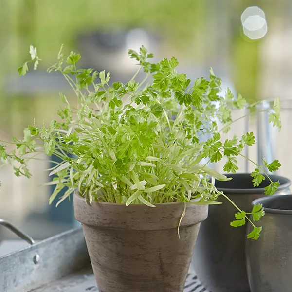 PETERSILIE (Petroselinum) ist der Klassiker unter den Küchenkräutern und besonders vielseitig. Es gibt sie in glatt und kraus. Sie ist universell einsetzbar, versteht sich mit allen anderen Kräutern und passt zu fast jedem Gericht. Als aromatische Zugabe auf dem Butterbrot, in Suppen, zu Gemüse oder schlicht als Verzierung. Sie sollte in keiner Küche fehlen! Neben diesen leckeren Vorzügen enthält Petersilie große Mengen Vitamin C und ist daher auch sehr gesund.