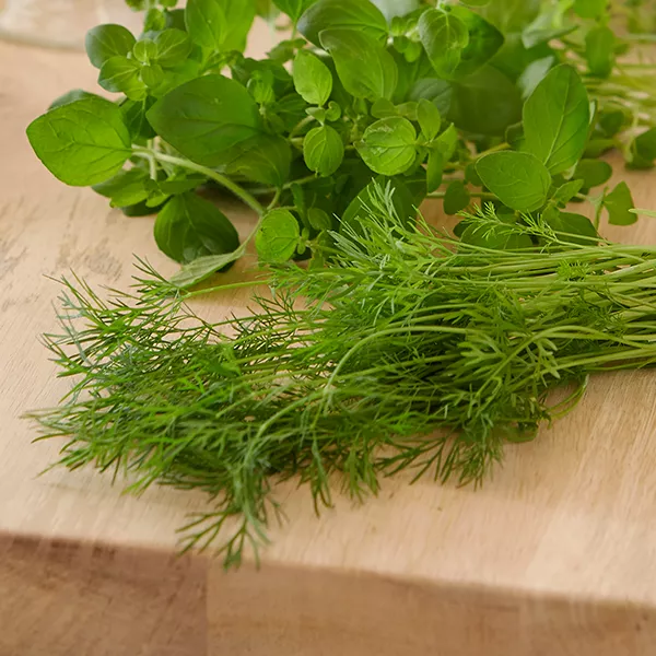 DILL (Anethum graveolens) ist ein traditionelles Gewürzkraut, das häufig zum Einwecken von Gurken verwendet wird – daher auch der Alternativname Gurkenkraut. Aber Dill ist noch vielseitiger: Als Gewürzkraut harmonieren Dillspitzen bestens mit zartem Fisch. Dill passt zudem hervorragend zu Salaten, Quark und Bohnengemüse und ist vor allem in der skandinavischen Küche Zuhause.