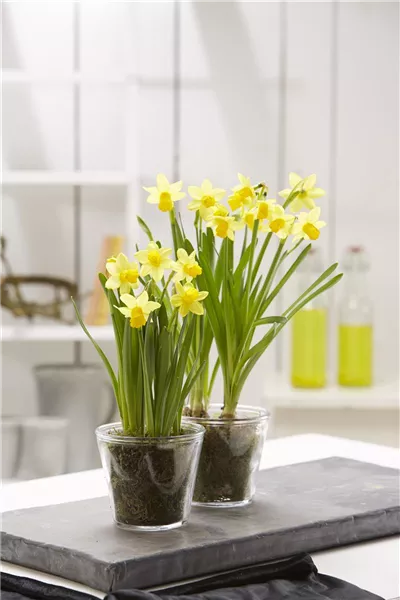 Die Narzisse ist eine sehr beliebte Zwiebelpflanze in unseren Gärten, wobei die beliebteste wohl die kleinblumige Narcissus ‘Tête-à-Tête‘ ist. Sie ist ein bekannter Frühlingsbote und bringt durch ihre vielen gelben Blüten Farbe in die Gärten. Die Narzisse eignet sich durch ihren kompakten Wuchs, auch sehr gut für bepflanzte Schalen und Kästen oder zur Dekoration der Wohnung.