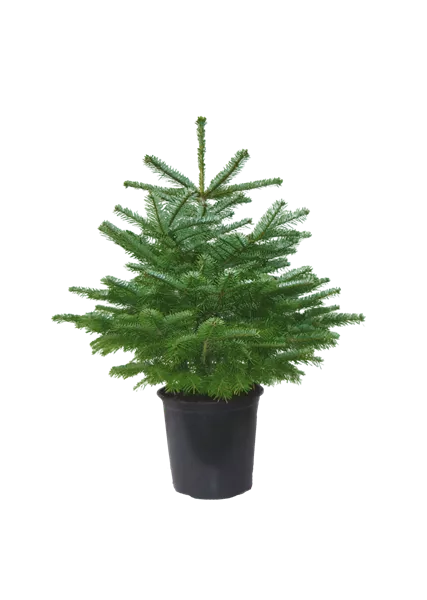 Mit einem geraden Stamm und einem gleichmäßigen Aufbau ist die Nordmanntanne (Abies nordmanniana) ein beliebter Weihnachtsbaum. Ihre Nadeln sind zwar sehr starr, im Gegensatz zu vielen Kiefergewächsen (Pinus) stechen sie aber nicht. Zudem verströmen sie einen angenehm harzigen Geruch. Mit einer Höhe von ca. 80 bis 90 cm können Sie mit ihr Ihren Außenbereich weihnachtlich schmücken.