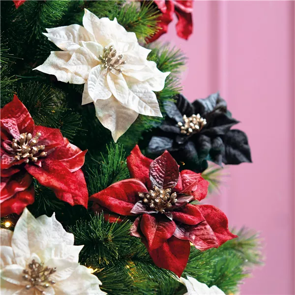 Die Weihnachtsstern-Clips bringen Blütenträume direkt an den Baum oder in die Festtagsdekoration. Erhältlich in Bordeaux, Creme oder Schwarz setzen sie schöne Farbakzente und lassen sich dank Clip-Verschluss ganz einfach befestigen. Als edle Ergänzung am Tannenbaum, an Kränzen oder in Tischdekorationen sorgen die dekorativen Sterne im Handumdrehen für einen glamourösen Look.