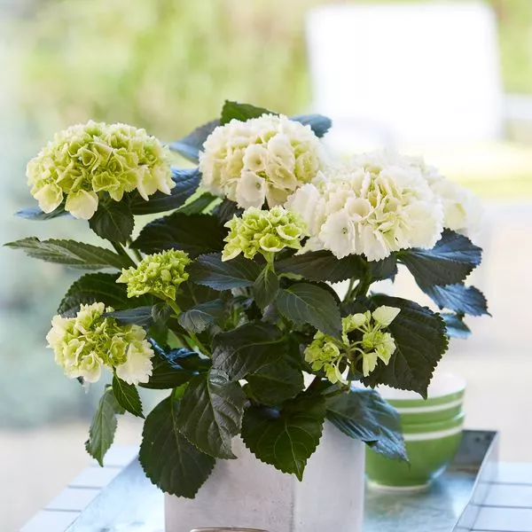 Die kugelrunden Blütendolden erstrahlen in den Farben weiss, rosa, pink und blau. Durch regelmäßige Düngergaben mit speziellem Hortensiendünger bleiben die satten Farben der blauen und pinkfarbenen Blüten erhalten.