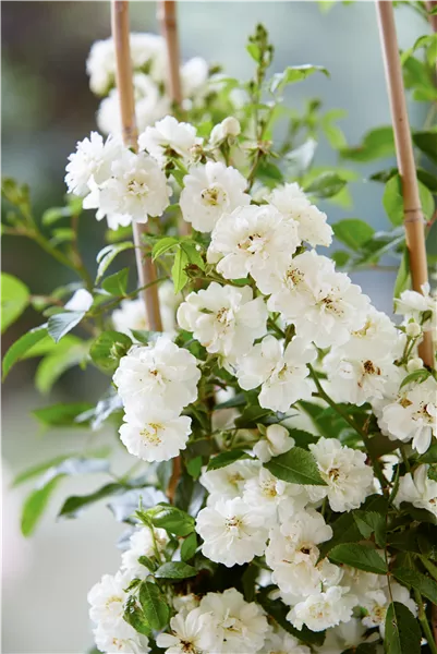 Zu den stark kletternden oder kriechenden Wildrosenarten gehören Ramblerrosen (Rosa-Hybride). Manche von ihnen blühen nur einmal im Jahr, dann verzaubern ihre vielen, kleinen Blüten jeden Rosenliebhaber. Die Triebe sind meist lang und biegsam, daher eignen sie sich hervorragend, um an Pergolen, Carports oder hohen Bäumen emporzuklettern. Der Name stammt aus dem Englischen „to ramble“, was mit dem Wort „wandern“ übersetzt werden kann.