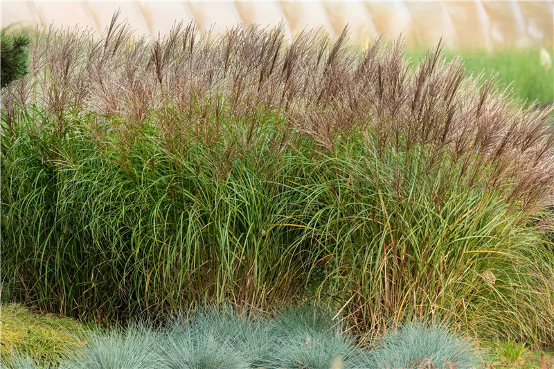 Gräser sind so vielfältig, haben aber dennoch einiges gemeinsam. Sie sind pflegeleicht, langlebig und eine Bereicherung für jeden Außenbereich. Das Chinaschilf (Miscanthus sinensis) wächst binnen kürzester Zeit zu einem Prachtstück heran. Es beeindruckt mit seinen Halmen und ab Juli mit federartigen Blütenähren. Das Chinaschilf kann je nach Sorte bis zu 2 m hoch werden. Durch den aufrechten Wuchs und den feinen Blütenrispen