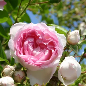 Die öfterblühende Ramblerrose (Rosa-Hybride) bezaubert durch ihren zarten Duft. Die kompakt wachsende Ramblerrose gehört zu den Mini-Kletterern, die nur eine Wuchshöhe von ca. 180 cm erreicht. Deshalb ist diese Rose auch für kleinere Gärten besonders gut geeignet. Ihre Blütezeit erstreckt sich von Juni bis Oktober und sie bevorzugt einen sonnigen bis halbschattigen Platz.