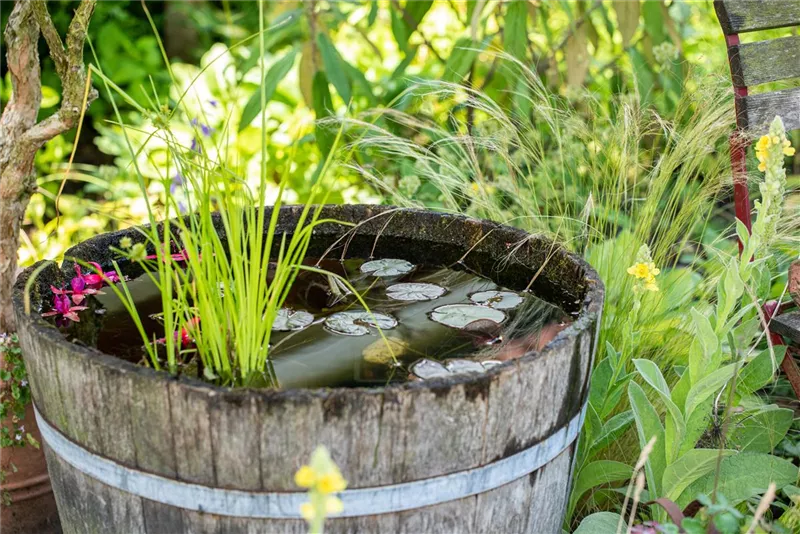 Gerade am Teichrand breiten sich gern Gräser und andere Pflanzen aus, die sich im feuchten Untergrund besonders wohl fühlen. Wer nicht rechtzeitig einschreitet, hat bald eher ein Sumpfgebiet oder Feuchtbiotop, da diese Pflanzen immer Richtung Teichmitte wuchern und die Wasserflächen somit schnell zuwachsen. Dem ausufernden Wachstum solcher Sumpfpflanzen kann durch Auslichten und den Einsatz von Pflanzkörben Einhalt geboten werden. Eine Wasserpflanze für den Teich, die gut in den flachen Zonen des Gewässers gedeiht, ist der Froschlöffel. Diese oft blütenreiche und winterharte Wasserpflanze für den Teich ist für seine wasserfilternden Eigenschaften bekannt und als Pflanze für den Teichrand beliebt. Sie kann bis zu einem Meter hoch werden und lockt mit ihren zarten Blüten viele nützliche Insekten in den Garten.