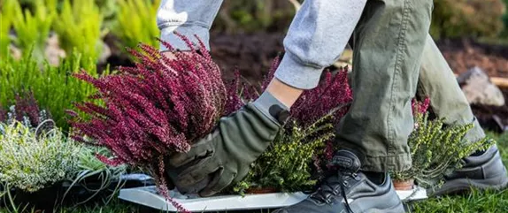 Wenn der Boden am geeigneten Standort gut vorbereitet wurde, kann man mit dem Pflanzen beginnen. Prinzipiell kann Heidekraut ganzjährig gepflanzt werden. Die Bezeichnung von Winterheide und Sommerheide bezieht sich auf die jeweilige Blütezeit der Pflanzen. Alle Arten der Heidepflanzen sind mehrjährig und können den Winter gut überstehen. Wenn man die Wahl hat, sollte man aber den Herbst oder das Frühjahr für die Pflanzung des Heidekrauts nutzen, da diese Zeiten am besten geeignet sind. Vor allem bei der Anlage eines Heidegartens, aber auch schon bei einem größeren Heidebeet sollte man sich vorher einen Plan machen, wo welche Pflanzen stehen sollen. Dabei sollte sowohl an die Optik, aber auch an die Möglichkeiten gedacht werden, um die Heide pflegen zu können.