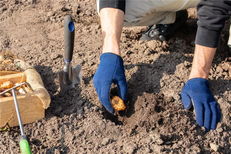 Um Sommerzwiebeln, die leicht durch Kälte Schaden nehmen können, sicher zu pflanzen, sollte man bis Mai warten. So lässt es sich vermeiden, dass die jungen Triebspitzen geschädigt werden und es zu vielen Ausfällen kommt. Da viele dieser empfindlicheren Sommerzwiebeln ihre ursprüngliche Heimat in wärmeren Gebieten haben, ist hier besondere Vorsicht geboten. Beliebte Sommerzwiebeln und Knollen dieser Art sind die Dahlien, Hahnenfuß, Frühlingsstern, Gartengloxinie, Indisches Blumenrohr, Gladiole, Glücksklee, Ismene, Jakobslilie, Taglilie, Sterngladiole, Tuberose sowie Sparaxis. Ebenfalls sehr kälteempfindlich sind Montbretie, Schopflilie und Zephirblume, während Freesien sogar noch bis in den Juli gepflanzt werden können. Aber auch im Hochsommer gibt es noch Sommerzwiebeln, die erst dann in den Boden sollten, damit sie sich gut entwickeln können.
