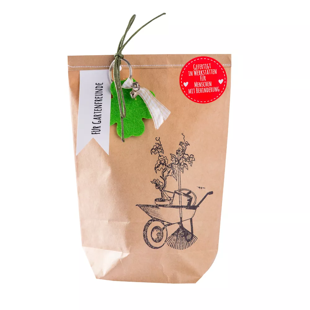 Braune Papiertüte 14x22cm liebevoll gefüllt, genäht und gestempelt. Inhalt nicht für Kinder unter 3 Jahren geeignet.