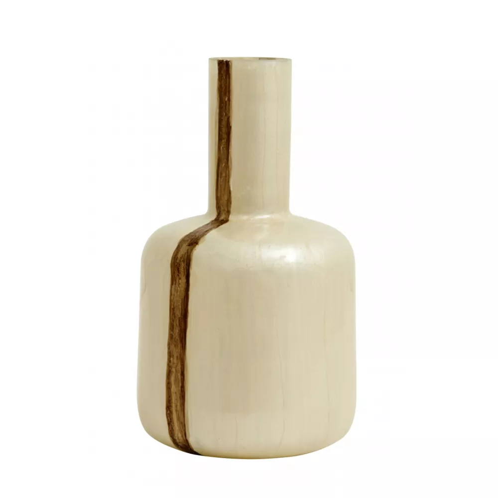 Vase Pearl Mother Brown von Nordal, Dekoflasche, Größe S, elfenbeinfarben mit braunem Streifen