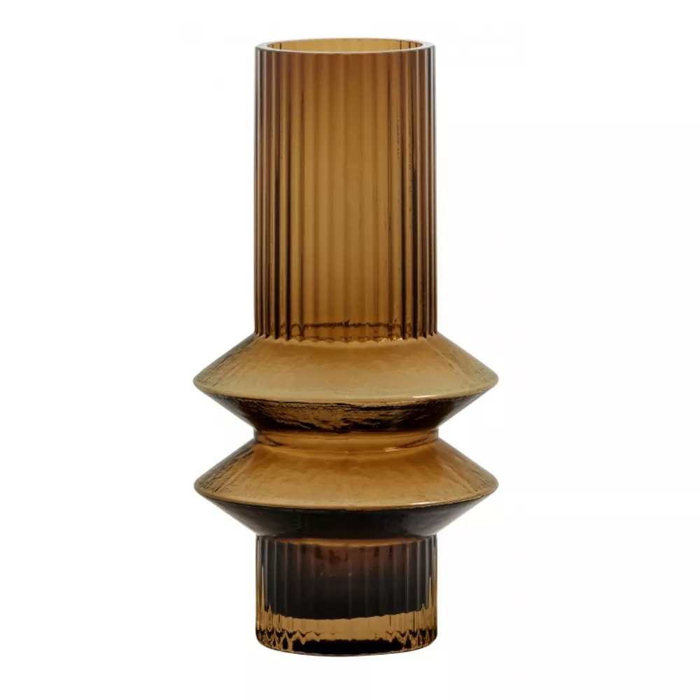 Vase Rilla S Amber von Nordal H 21 cm Rillenmuster Amber Braun Handarbeit Glas