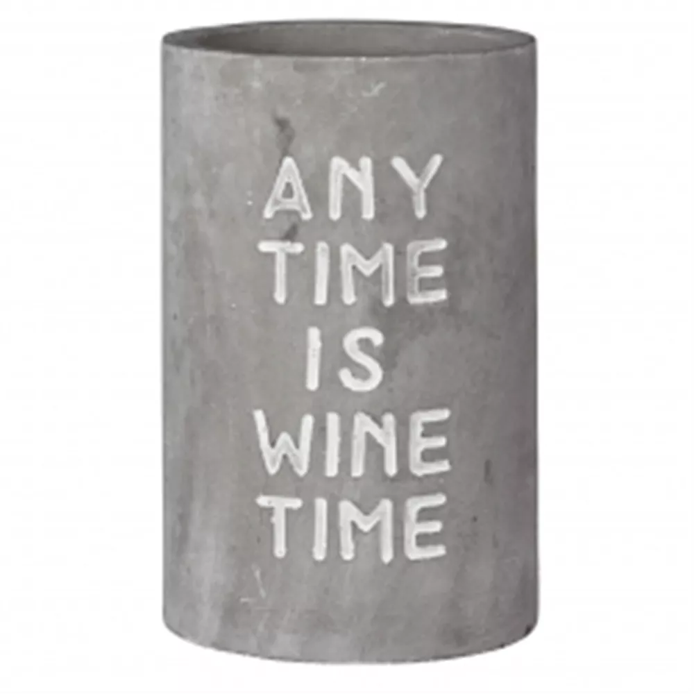 Weinkühler aus Beton mit Prägung "Any Time is Wine Time"