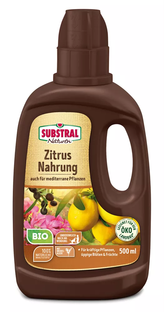 - Organisch-mineralischer, flüssiger Volldünger für alle Zitrusarten und mediterrane Pflanzen, im Zimmer, auf dem Balkon und Terrasse