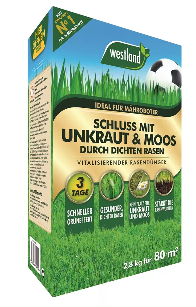 - Verbessert die Widerstandsfähigkeit und fördert die Konkurrenzkraft der Gräser gegenüber Moos