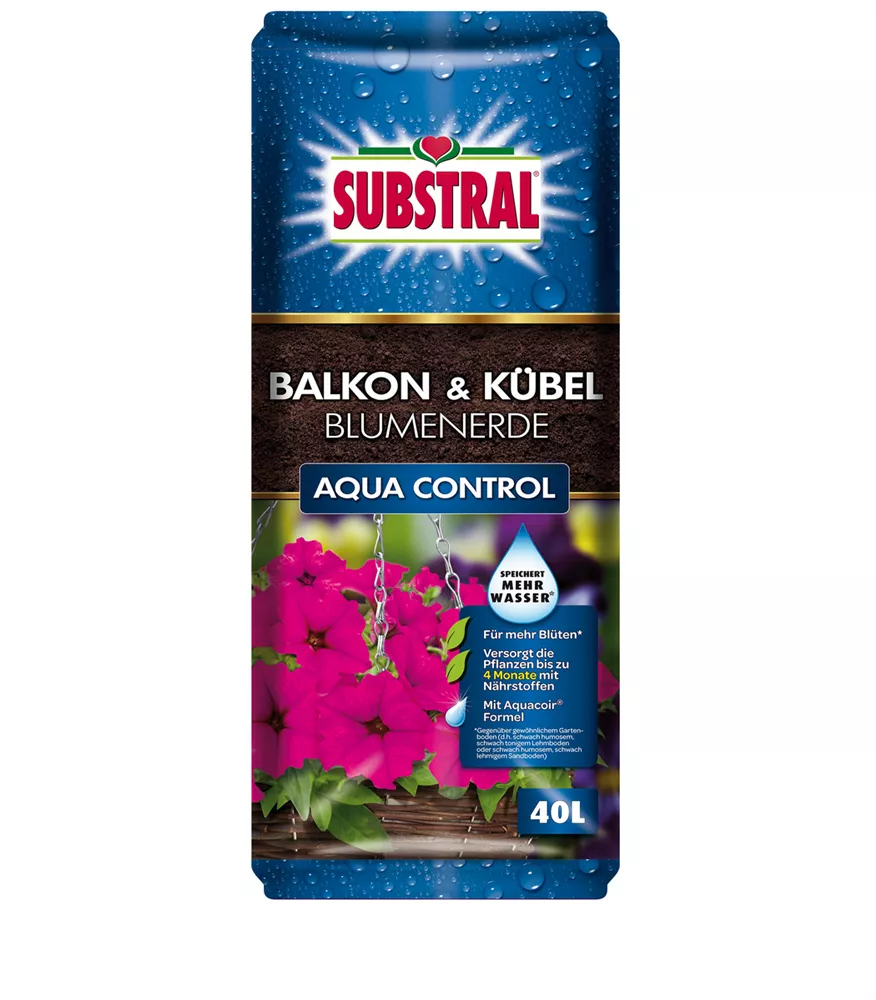 Diese Spezialerde ist ideal für anspruchsvolle Balkon- und Kübelpflanzen wie Geranien, Surfinien, Mandevilla. Sie speichert doppelt so viel Wasser wie herkömmliche Gartenerde und gibt die Feuchtigkeit bedarfsgerecht an die Pflanzen ab. Überwässerung und Austrocknen des Wurzelballens gehören der Vergangenheit an. Angereichert mit SUBSTRAL Dünger versorgt Substral Balkon & Kübel Blumenerde Aqua Control die Pflanzen bis zu 4 Monate mit Nährstoffen. Für mehr Blüten gegenüber herkömmlicher Gartenerde. Die hohe Strukturstabilität und das hohe Luftvolumen schaffen optimale Bedingungen für gesundes Wurzelwachstum.