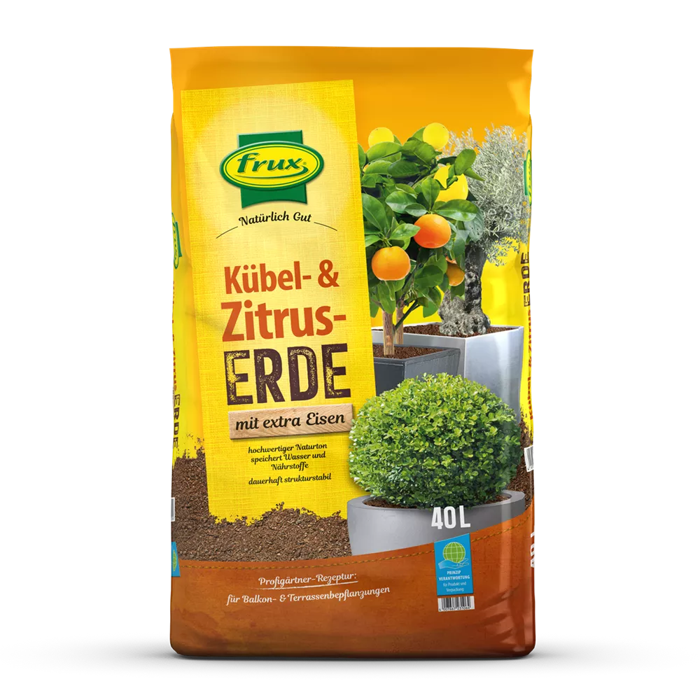 Mit der frux Kübel- & Zitruspflanzenerde steht dem Verbraucher eine hochwertige Einheitserde zur Verfügung, die sich schon jahrzehntelang im internationalen Erwerbsgartenbau bewährt hat. frux Kübel- & Zitruspflanzenerde ist ein gebrauchsfertiges Kultursubstrat zum Ein- und Umtopfen all Ihrer Kübel- und Zitruspflanzen.