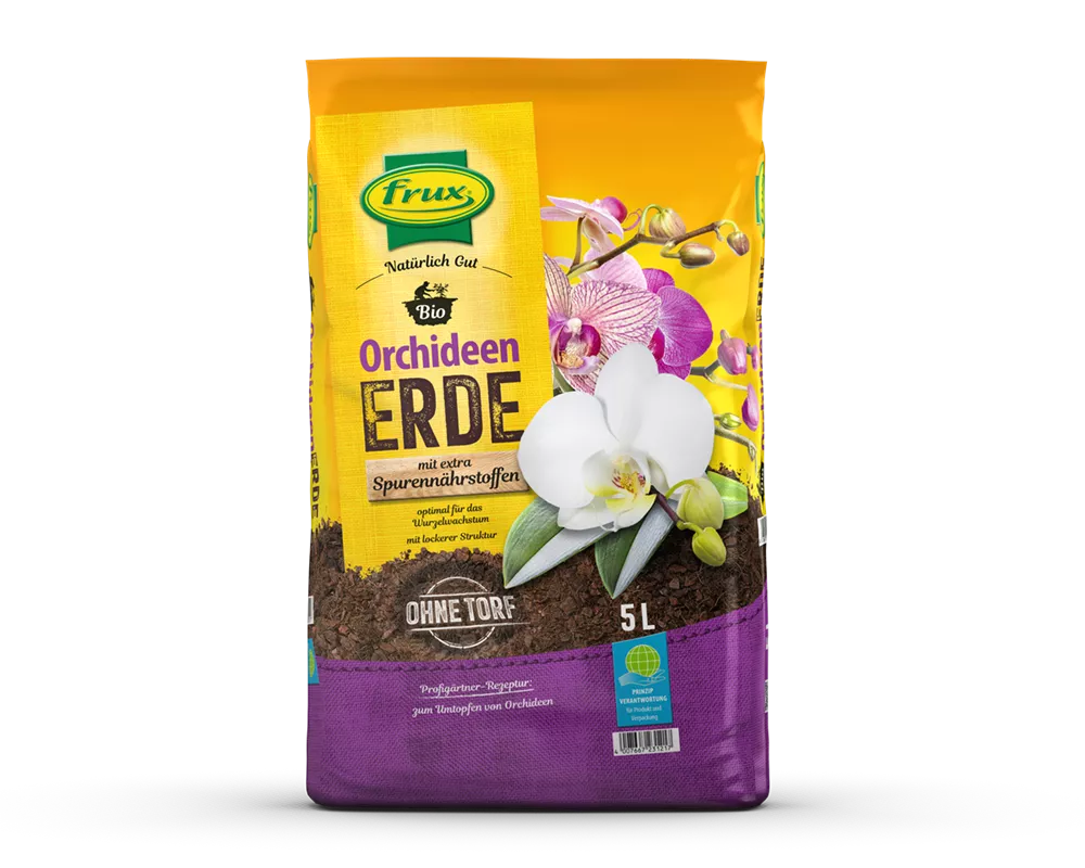 Die frux Orchideenerde ist ein gebrauchsfertiges Pflanzsubstrat aus dem bewährten frux Erdensortiment zum Topfen aller Orchideenarten. Die für diese Pflanzen wichtige Luft- und Wasserführung wird durch die Zugabe von Pinienrinde und die hervorragende Struktur der Erde gesichert. frux Orchideenerde enthält speziell auf Orchideen abgestimmte Dünger. Der optimale pH-Wert sichert eine gute Pflanzenentwicklung.