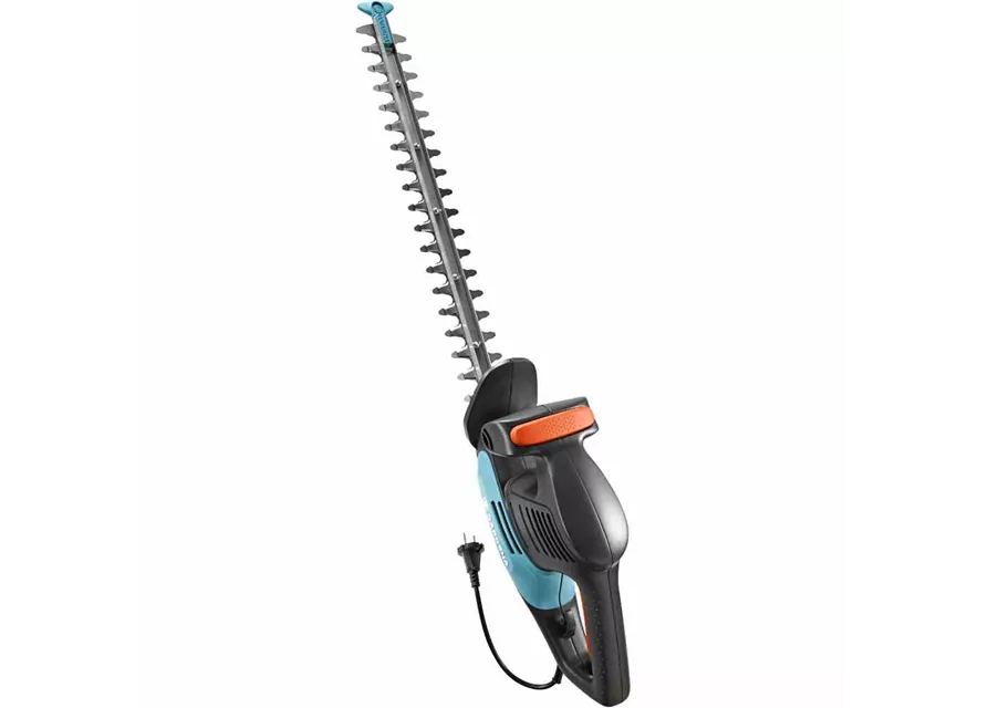 Die handliche und sehr leichte GARDENA Elektro-Heckenschere EasyCut 420/45 eignet sich besonders für den Rückschnitt kleinerer Hecken. Für eine ausgewogene Balance sorgt vor allem das kompakte Design. Dank des speziellen ErgoTec-Handgriffs lässt sich die Heckenschere optimal führen und eignet sich vor allem für seitliche Heckenschnitte. Die speziell geformten Messer sorgen für einen effizienten und sauberen Schnitt von Zweigen und dünnen Ästen. Die Motorleistung beträgt 420 W bei einer Messerlänge von 45 cm.