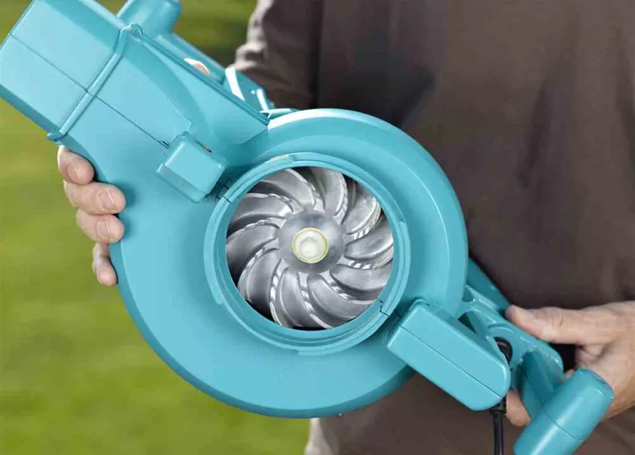 • Einfacher, werkzeugloser Wechsel von Saug- auf Blasfunktion
