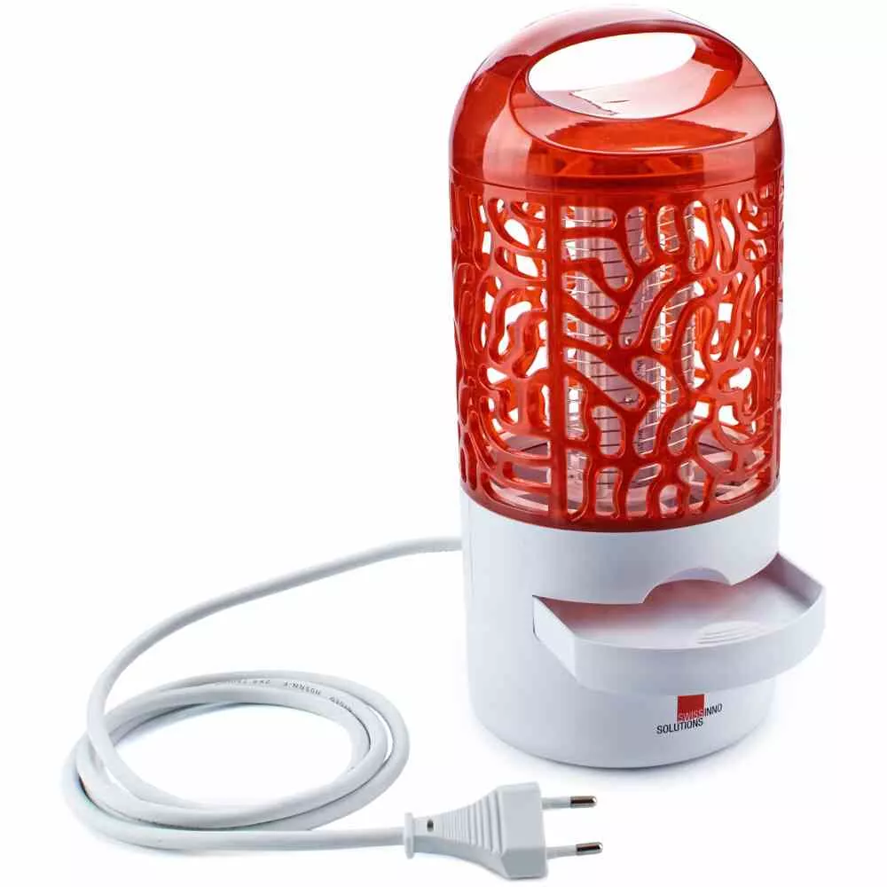• Durch das ausgesendet ultraviolette Licht (LED) werden Insekten, wie Mücken und Fliegen, angelockt und in einem Hochspannungsgitter sofort getötet.
