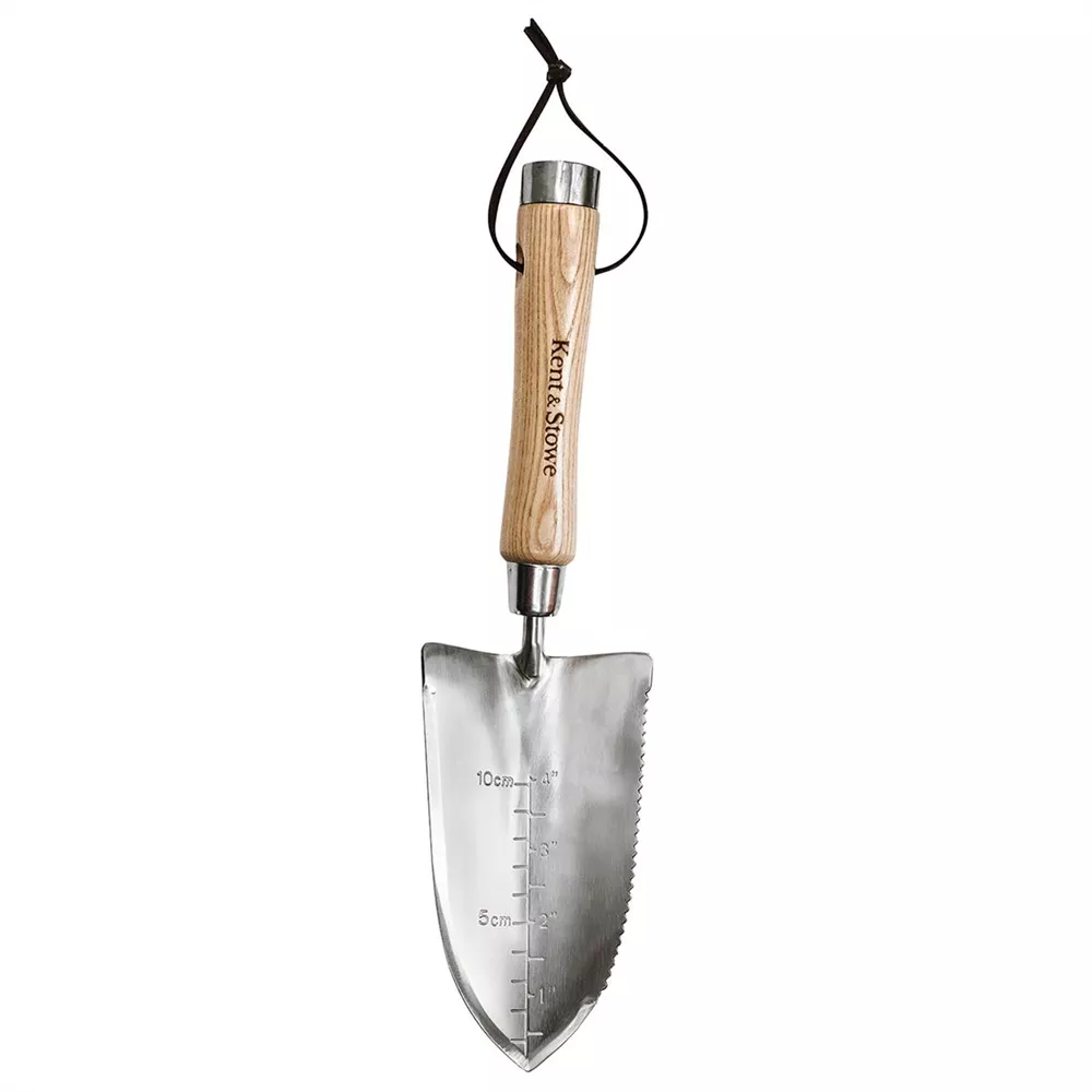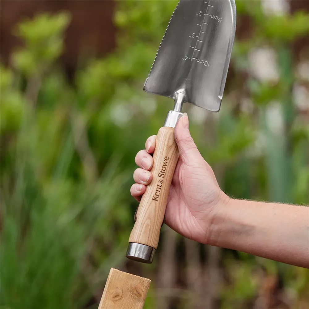 - Kopf aus hochwertigem, polierten Edelstahl für Rostbeständigkeit und minimale Erdanhaftung Handgriff aus wunderschönem Eschenholz, mit Stielprofil für perfekten Griffkomfort