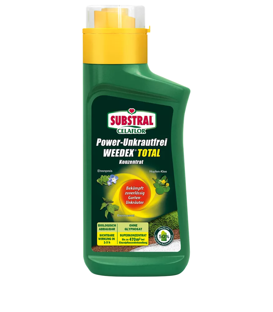 Substral Celaflor Power-Unkrautfrei WEEDEX TOTAL Konzentrat dient der Bekämpfung von zweikeimblättrigen Unkräutern bei Ziergehölzen und Wege & Plätze mit Holzgewächsen.