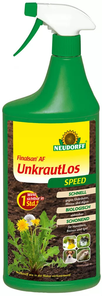 Anwendungsfertiger Unkrautvernichter gegen Unkräuter, Moos und Algen. Wirkt sichtbar in 1 Stunde und ist biologisch abbaubar (nach OECD 301 F).