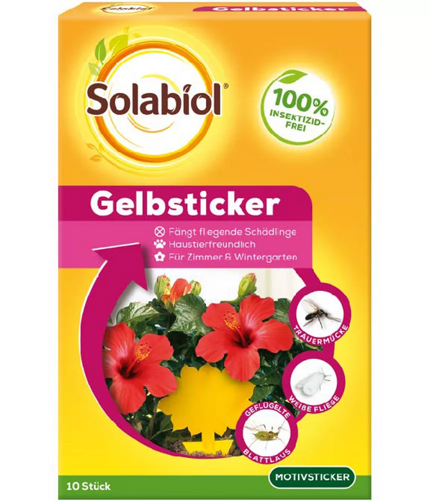 Fängt fliegende Schadinsekten wie Weiße Fliegen, Trauermücken, Geflügelte Blattläuse und Minierfliegen an Zimmer- und Wintergartenpflanzen.