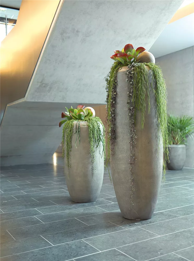 Dass Pflanzgefäße in Beton-Optik nicht langweilige aussehen müssen, beweisen die formschönen CIGAR-Pflanzgefäße von fleur ami. Dank Ihrer glatten, porösen Oberfläche in warmem Grau bieten sie einer natürlichen Bepflanzung eine optimale Grundlage und passen sich spielend leicht den unterschiedlichen Einsatzorten an. Aus leichtem Polystone-Material gefertigt sind sie sowohl für den Innen- als auch für den Außeneinsatz konzipiert und in drei verschiedenen Größen erhältlich.
