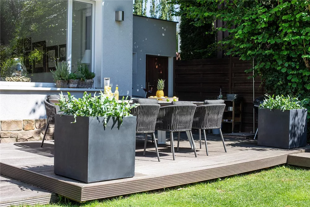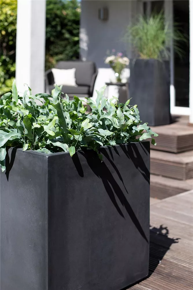 Liebhaber des Zement-Looks kommen mit der Serie DIVISION PLUS von fleur ami voll auf Ihre Kosten. Gerade Linien und schlichte Formen bestimmen die Optik der Pflanzgefäße, Raumteiler, Konsolen, Schalen und Pflanzsäulen und eignen sich daher ideal für eine moderne Gestaltung von Außenbereichen. DIVISION PLUS wird aus glasfaserverstärktem Naturzement hergestellt, der eine uneingeschränkte Nutzung im Outdoor-Bereich möglich macht, frostfest und pflegeleicht ist. Die schwere und standsichere Ausführung der Produkte verhindert zudem ein schnelles Umkippen der bepflanzten Gefäße bei stärkerem Wind. Passende Rollenuntersetzer aus Edelstahl ermöglichen einen flexiblen Einsatz der bepflanzten Gefäße und bieten damit viele Möglichkeiten für die Gestaltung von Innen- wie Außenbereichen.