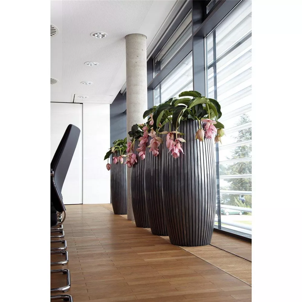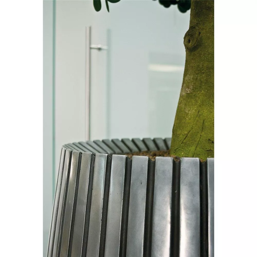 Für besondere Akzente sorgt LINES von fleur ami. Die Pflanzgefäße, Vasen und Schalen der Serie zeichnen sich durch eine geriffelte Oberfläche aus, die ihnen eine außergewöhnliche und elegante Anmutung verleiht. Ein schönes Detail bei den Gefäßen ist zudem der breite eingezogene Rand. Der Hingucker: Das vierteilige, passende Wandbild BULLS EYE im konzentrischen Design. Eine einzigartige und innovative Materialkombination aus modernem Fiberglas und natürlichem Aluminiumpulver sorgt dafür, dass die Oberfläche von LINES - bei gleichzeitig reduziertem Gewicht und optimaler Stabilität - natürlich wirkt. Eine zusätzliche Besonderheit: Durch Oxidationsprozesse bildet sich mit der Zeit eine echte und natürlich anmutende Patina auf der Oberfläche der Gefäße - aber selbstverständlich ohne zu rosten.