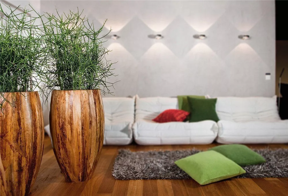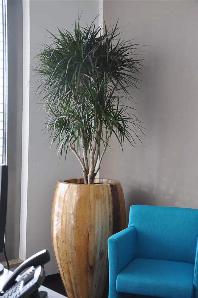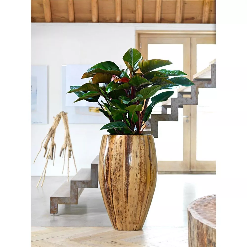 In Handarbeit aufgebrachte Bananenblätter garantieren für den besonders natürlichen und exotischen Look der BANANA Pflanzgefäße. Dank ihrer hochwertigen Verarbeitung sind auch die Gefäßränder mit den Bananenblättern bezogen - so sind die Gefäße ein wunderschöner Hingucker. Da die Basis aus robustem und leichtem Fiberglas hergestellt ist, sind selbst die großen Pflanzgefäße leicht zu transportieren.