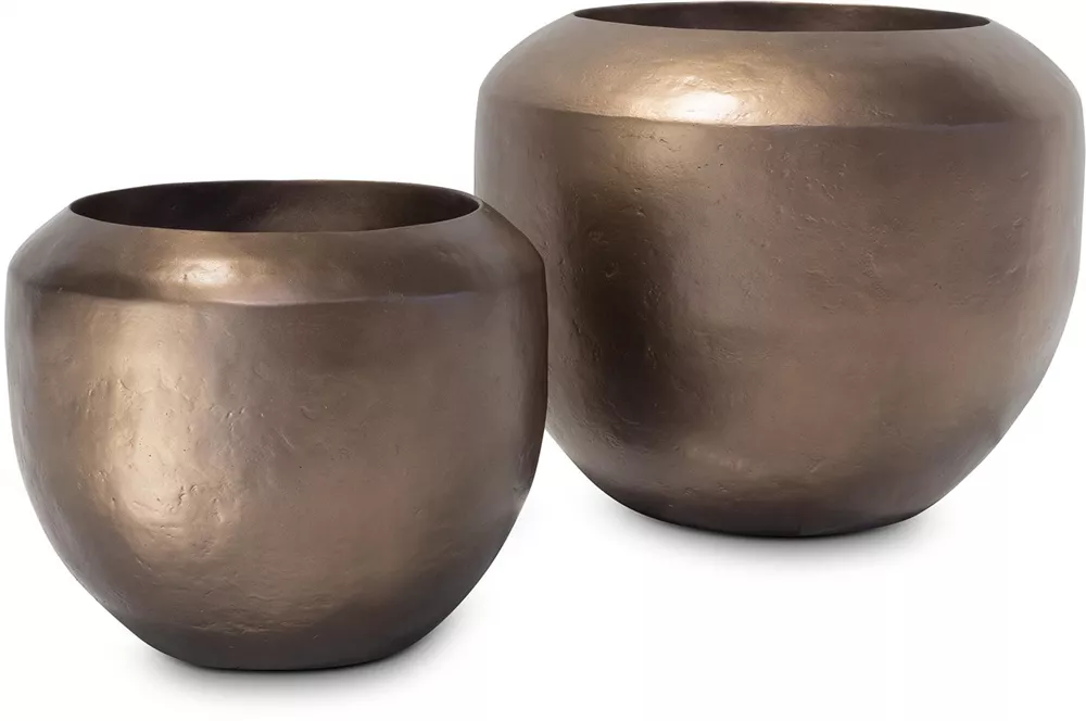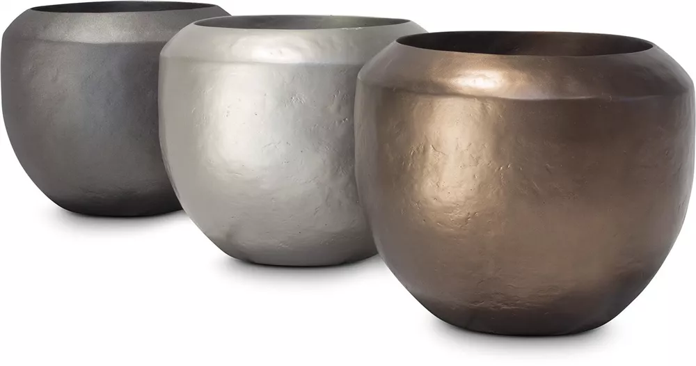Die flachen und klassisch geformten Pflanzgefäße LOFT bieten sich vor allem für Dekorationen mit hochgewachsenen Pflanzen an. Hergestellt aus einem innovativen Materialmix aus Kunststoff und echten Metallpartikeln sind sie besonders leicht, robust und UV-restistent, da sie nicht lackiert wurden. Mit der Zeit entwickeln die Gefäße zudem eine echte Patina, sie können aber trotzdem nicht rosten.