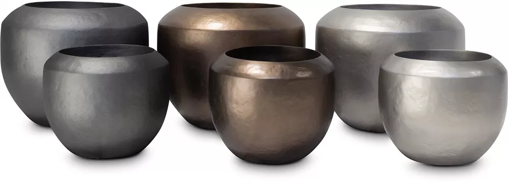 Die flachen und klassisch geformten Pflanzgefäße LOFT bieten sich vor allem für Dekorationen mit hochgewachsenen Pflanzen an. Hergestellt aus einem innovativen Materialmix aus Kunststoff und echten Metallpartikeln sind sie besonders leicht, robust und UV-restistent, da sie nicht lackiert wurden. Mit der Zeit entwickeln die Gefäße zudem eine echte Patina, sie können aber trotzdem nicht rosten.