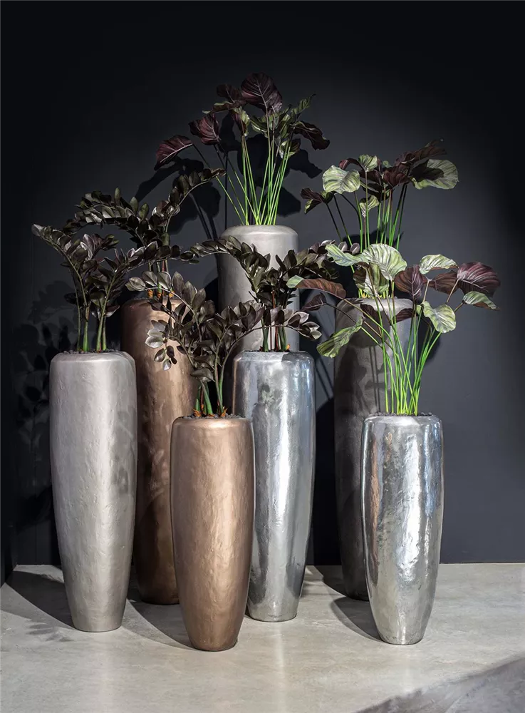 Die hohen und schmalen LOFT Pflanzgefäße sind besonders dann eine tolle Lösung, wenn nur wenig Platz für Bepflanzungen und Dekorationen vorhanden ist. Die LOFT mirror shine überzeugen mit einem innovativen Materialmix aus Kunststoff und echten Metallpartikeln und sind daher besonders leicht und robust. Zudem sind sie UV-resistent und können nicht rosten, entwickeln aber mit der Zeit eine echte Patina. Daher passen die Gefäße vor allem zu Einrichtungen und Dekorationen im Industrial Chic besonders gut. Kontergewichte in den Füßen vermeiden ein schnelles Umkippen der hohen Gefäße und zur zusätzlichen Stabilisierung sind verschiedene Standfüße sowie ein Erdspieß als optionales Zubehör erhältlich. Besonderer Vorteil: Die LOFT Pflanzsäulen in 100 Zentimeter lässt sich mit einem optional erhältlichen Pflanzeinsatz ausstatten. Das erleichtert zum einen die Bepflanzung (durch die Reduktion der Pflanztiefe des hohen Pflanzkübels) und garantiert zum anderen einen schnellen und flexiblen Austausch der Bepflanzung/Dekoration.
