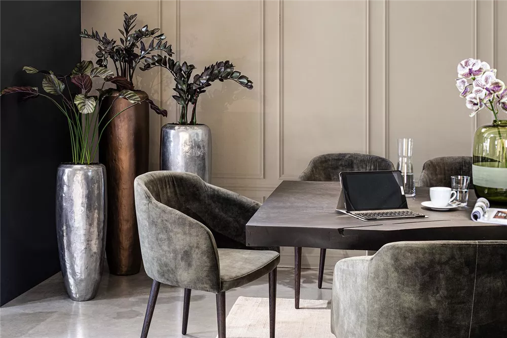 Die hohen und schmalen LOFT Pflanzgefäße sind besonders dann eine tolle Lösung, wenn nur wenig Platz für Bepflanzungen und Dekorationen vorhanden ist. Die LOFT mirror shine überzeugen mit einem innovativen Materialmix aus Kunststoff und echten Metallpartikeln und sind daher besonders leicht und robust. Zudem sind sie UV-resistent und können nicht rosten, entwickeln aber mit der Zeit eine echte Patina. Daher passen die Gefäße vor allem zu Einrichtungen und Dekorationen im Industrial Chic besonders gut. Kontergewichte in den Füßen vermeiden ein schnelles Umkippen der hohen Gefäße und zur zusätzlichen Stabilisierung sind verschiedene Standfüße sowie ein Erdspieß als optionales Zubehör erhältlich. Besonderer Vorteil: Die LOFT Pflanzsäulen in 80 Zentimeter lässt sich mit einem optional erhältlichen Pflanzeinsatz ausstatten. Das erleichtert zum einen die Bepflanzung (durch die Reduktion der Pflanztiefe des hohen Pflanzkübels) und garantiert zum anderen einen schnellen und flexiblen Austausch der Bepflanzung/Dekoration.