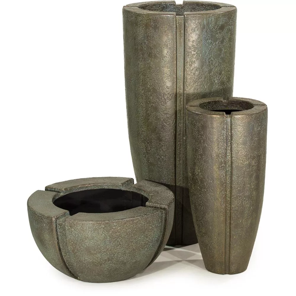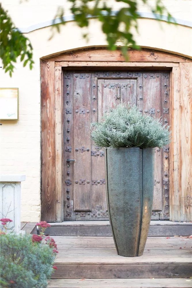 Vor allem für Liebhaber des Antik-Looks bieten die PATINA Gefäße schöne Dekorationsmöglichkeiten. Hergestellt aus einer modernen Materialkombination aus Kunststoff und echten Bronzepigmenten, ist PATINA besonders leicht und robust und lässt sich sowohl im Innen- als auch Außenbereich einsetzen. Das Besondere an den Gefäßen ist ihre natürliche und echte Patina, die durch Oxidationsprozesse der Bronzepigmente entsteht und sowohl der Schale als auch den Pflanzgefäßen einen speziellen Charme verleiht. Für einen Einsatz im Außenbereich kann problemlos ein Ablauf in den Gefäßboden gebohrt werden.