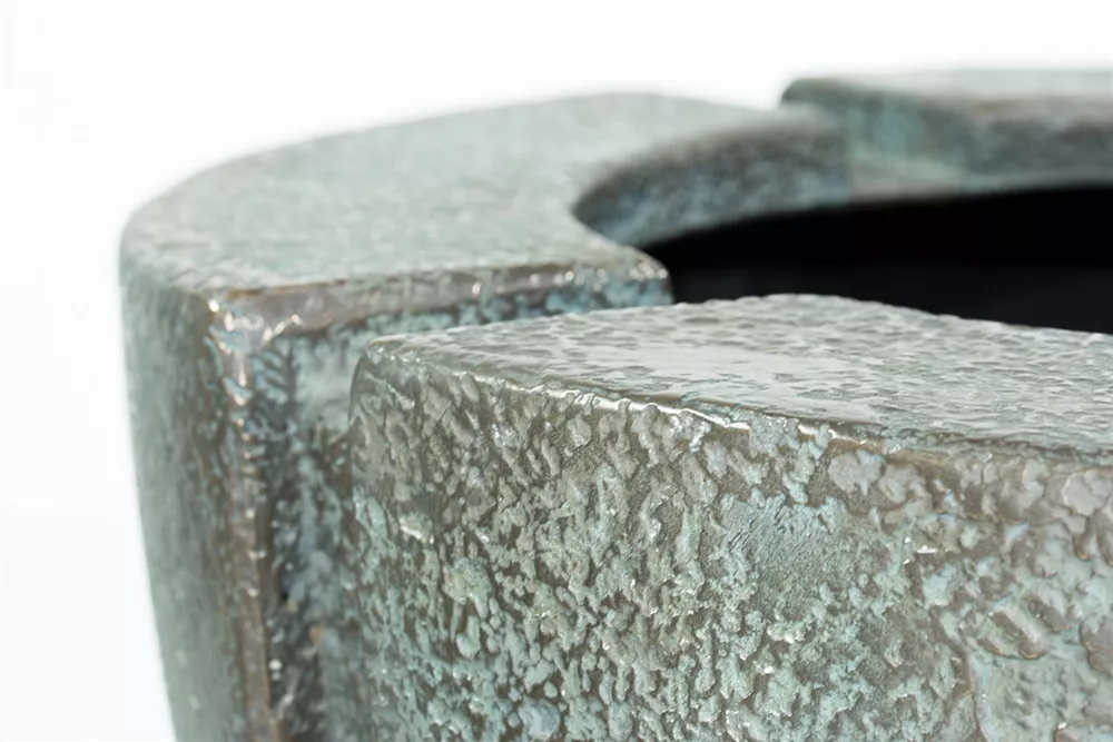 Vor allem für Liebhaber des Antik-Looks bieten die PATINA Gefäße schöne Dekorationsmöglichkeiten. Hergestellt aus einer modernen Materialkombination aus Kunststoff und echten Bronzepigmenten, ist PATINA besonders leicht und robust und lässt sich sowohl im Innen- als auch Außenbereich einsetzen. Das Besondere an den Gefäßen ist ihre natürliche und echte Patina, die durch Oxidationsprozesse der Bronzepigmente entsteht und sowohl der Schale als auch den Pflanzgefäßen einen speziellen Charme verleiht. Für einen Einsatz im Außenbereich kann problemlos ein Ablauf in den Gefäßboden gebohrt werden.