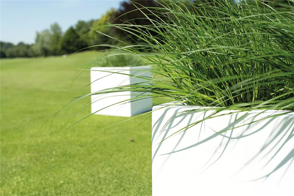 Mit den CUBUS Würfeln der fleur ami PREMIUM COLLECTION kommen vor allem Liebhaber von klaren und geomerischen Formen voll auf ihre Kosten. Die doppelwandigen Pflanzgefäße setzen jede Pflanze gekonnt in Szene und schaffen dank ihres Ablaufs mit Drehverschluss sowohl in Haus und Objekt als auch im Außenbereich eine klare Struktur. Die Gelcoat-Gefäße überzeugen mit besonderen Qualitätsmerkmalen und sorgen damit für langanhaltende Freude in der Innen- und Außendekoration. Die Basis der Produkte bildet ein leichter und robuster Glasfaser-Verbundwerkstoff, der mit einem ca. 2 mm starken Gel-Coating überzogen ist - in einer Technik, die aus dem Schiffsbau bekannt ist und dafür sorgt, dass das Material Osmose-beständig und somit auch nach Jahren absolut wasserundurchlässig ist. Im Gegensatz zu üblichen, deutlich dünneren Lackierungen, die meist nur 0,1 mm dick sind, ist eine Gelcoat-Beschichtung schlag- und kratzfest, UV-stabil und witterungsbeständig. Das bedeutet, dass die Oberfläche nicht abblättert, lange gut aussieht und die Gefäße daher absolut outdoor-geeignet sind. Zudem überzeugt das Gel-Coating durch seine Säure- und Chemikalien-Resistenz; weder Hunde-Urin noch Reinigungsmittel können unschöne Spuren auf der Gefäßoberfläche hinterlassen. Besonders in öffentlichen Bereichen wie Fußgängerzonen, Außengastronomie oder vor Geschäften eröffnen die vielen Vorteile der Gelcoat-beschichteten Gefäße diverse Einsatzmöglichkeiten. Ein zusätzlicher Clou sind die optional erhältlichen Standfüße, die den Gefäßen eine leicht schwebende Optik verleihen. Zudem erleichtern optionale Gelenkrollen die Platzierung und machen einen flexiblen Einsatz - auch im Außenbereich - möglich.