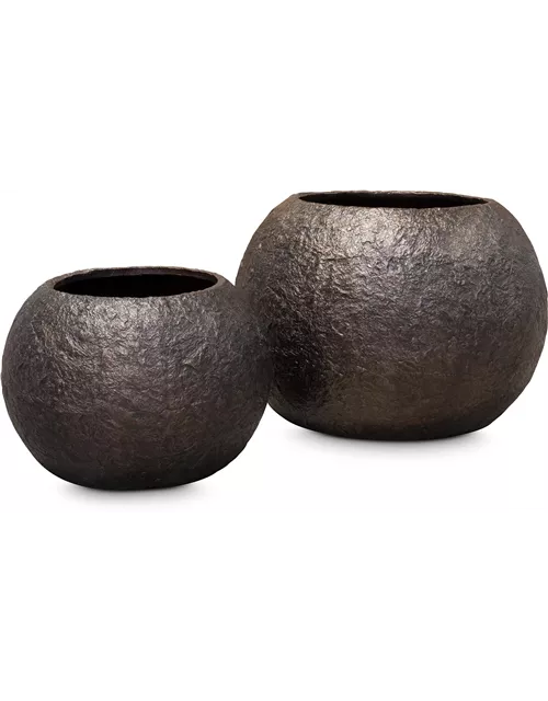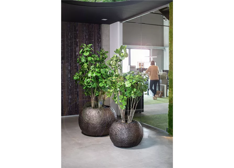 Hergestellt aus Kunststoff mit echten Bronzepigmenten punkten die ROCKY Pflanzgefäße mit ihrer ganz besondere Optik und einem geringen Gewicht. Durch Oxidationsprozesse bildet sich mit der Zeit eine echte und natürlich anmutende Patina auf der Gefäßoberfläche − selbstverständlich ohne zu rosten. Für eine Bepflanzung im Außenbereich kann problemlos ein Loch in den Gefäßboden gebohrt werden.