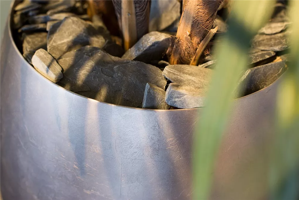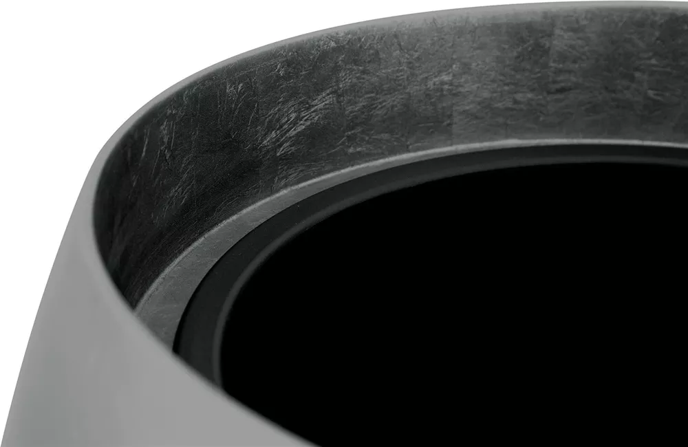 Eine gelungene Kombination aus schlichter Formgebung und edler Oberflächengestaltung sind die neuen ROYAL Pflanzkübel. Hergestellt aus robustem Kunstharz, ist ihre Oberfläche mit einer hübschen Blattsilber-Optik in modernem titan-grau veredelt, welche die großen Pflanzgefäße zu einer eleganten Erscheinung macht. Ein Kontergewicht im Gefäßboden sorgt für zusätzliche Standsicherheit. Besonderer Vorteil: Die Gefäße können mit einem optional erhältlichen Pflanzeinsatz ausgestattet werden – für ein schnelleres und flexibleres Bepflanzen und Dekorieren.
