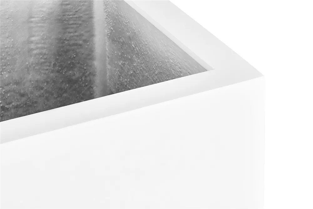 Ein hübsches Gestaltungselement, das sowohl im Innen- als auch Außenbereich eingesetzt werden kann, ist der eckige, matt weiße Pflanzkübel TRIBECA BLOCK. Das wasserdichte Pflanzgefäß ist aus glasfaserverstärktem Kunststoff hergestellt und hat eine hochwertige 2K-Beschichtung. Für eine Platzierung auf Terrasse oder Balkon können problemlos Löcher in den Gefäßboden gebohrt werden. Dank der schlichten Formgebung fügt sich das moderne, eckige Pflanzgefäß problemlos ein und lässt sich auch wunderbar mit weiteren Pflanzkübeln kombinieren.