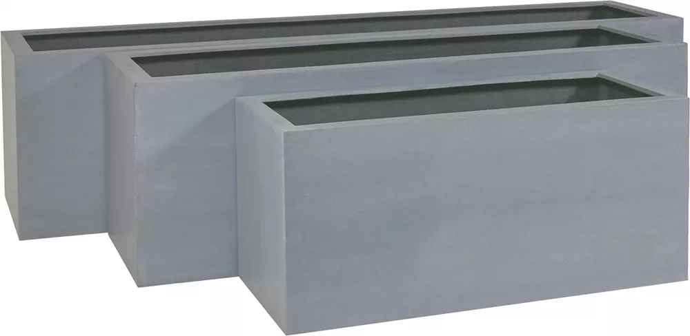 Der graue Pflanzkasten TRIBECA SOLID ist für einen Einsatz im Innen- als auch Außenbereich geeignet. Für eine Platzierung auf Terrasse oder Balkon können problemlos Löcher in den Gefäßboden gebohrt werden. Der große, rechteckige Pflanzkasten ist aus Sandstone hergestellt, einem Kompositmaterial das aus Kunststoff und natürlichem Steinmehl besteht. Die Oberfläche besticht durch einen natürlich, attraktiven Stein-Look. Dank der reduzierten Formgebung harmoniert der moderne Pflanzkasten mit vielen Einrichtungen und bietet ein attraktives Gestaltungselement im Outdoorbereich - zum Beispiel als Begrenzung der Terrasse. Darüber hinaus lässt sich der flache, große Pflanzkübel auch wunderbar mit weiteren Pflanzgefäßen kombinieren.