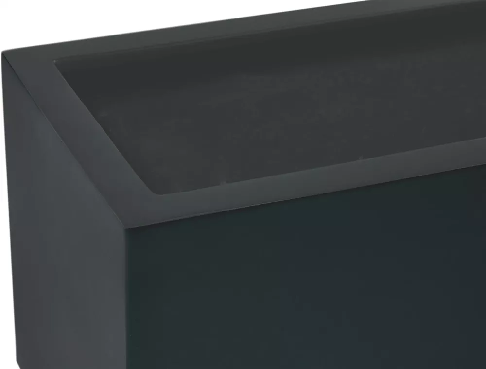 Der matt anthrazitfarbene Pflanzkasten TRIBECA SOLID ist für einen Einsatz im Innen- als auch Außenbereich geeignet. Für eine Platzierung auf Terrasse oder Balkon können problemlos Löcher in den Gefäßboden gebohrt werden. Der rechteckige Pflanzkasten ist aus glasfaserverstärktem Kunststoff hergestellt und hat eine hochwertige 2K-Beschichtung. Dank der reduzierten Formgebung harmoniert der moderne Pflanzkasten mit vielen Einrichtungen und bietet ein attraktives Gestaltungselement im Outdoorbereich - zum Beispiel als Begrenzung der Terrasse. Darüber hinaus lässt sich der flache Pflanzkübel in Anthrazit auch wunderbar mit weiteren Pflanzgefäßen kombinieren.