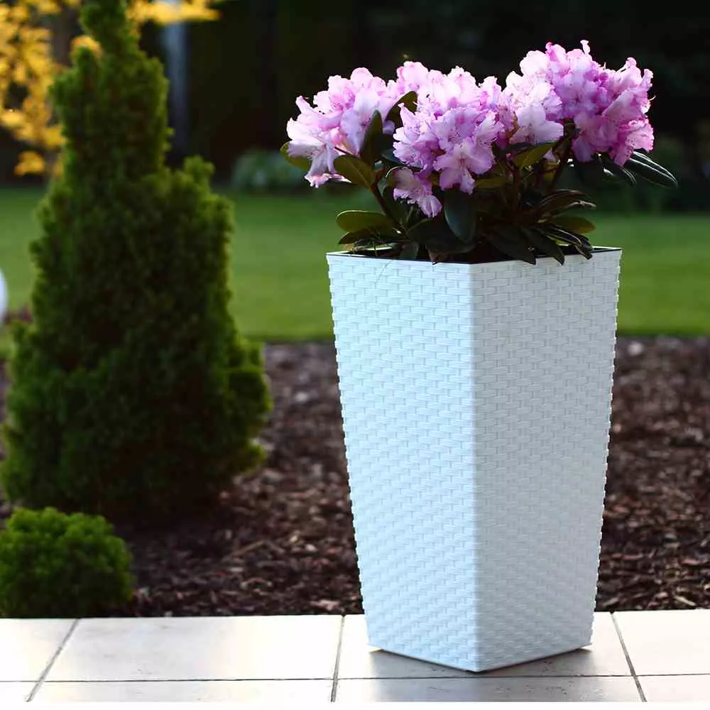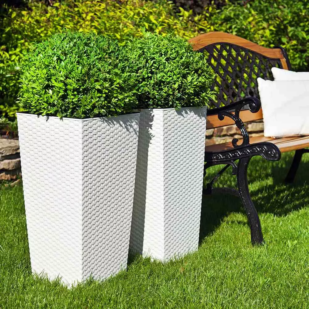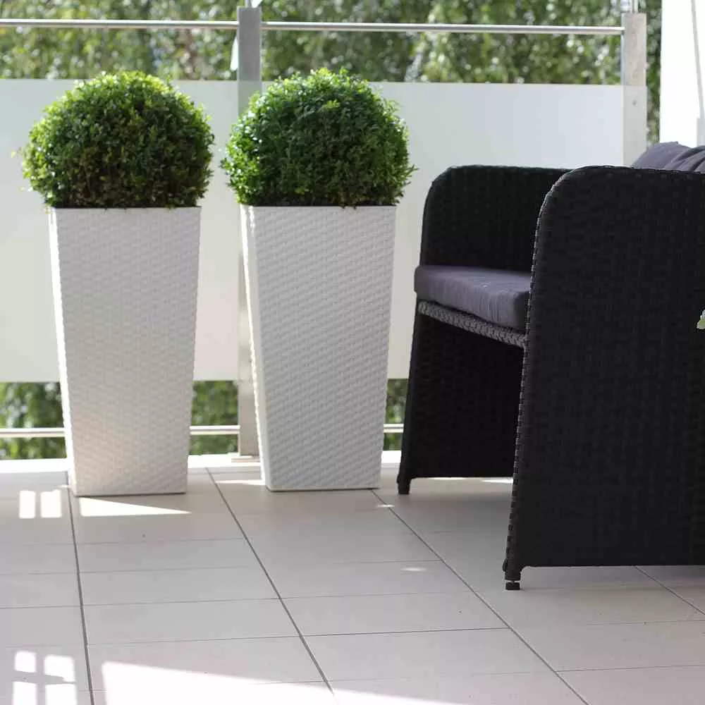 Siena Garden Pflanzkübel Paris, eckig, 35x35x68,0 cm Rattanoptik in weiß Kunststoff
