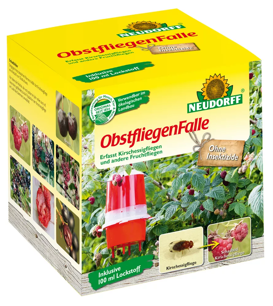 Falle zur sicheren Erfassung (Monitoring) der Kirschessigfliege und anderen Fruchtfliegen. Ideal für den Einsatz bei Kirschen, Wein, Himbeeren etc.