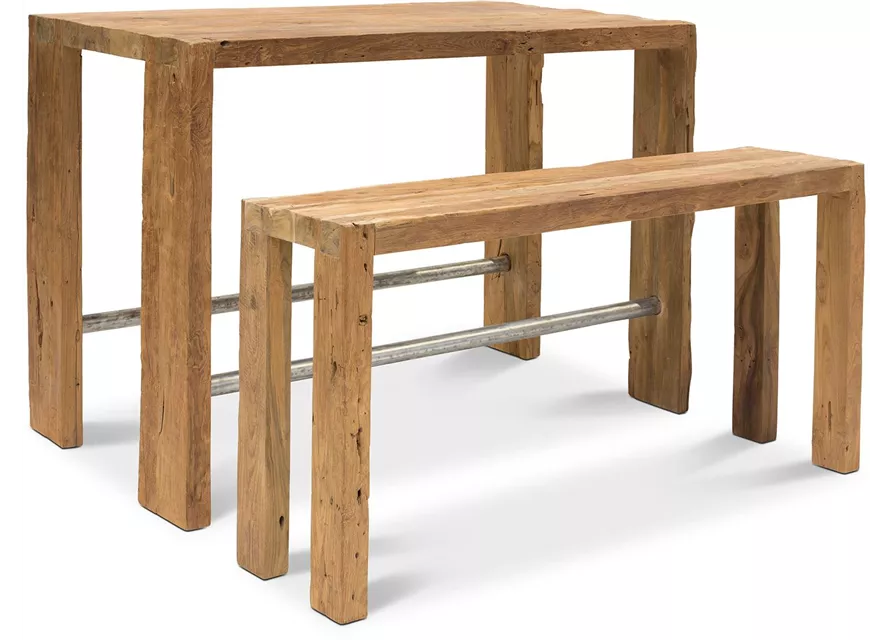 Schlicht, rustikal und äußerst stabil: Die hohe Sitzbank HAPPY HOUR sorgt für einen stylishen Touch in Ihrem Garten, auf der Terrasse oder auf dem Balkon. Die Bank ist aus recyceltem, 6 cm starkem Teakholz gefertigt und punktet mit ihrem hübschen Vintage-Charme. Im Außenbereich kann es zu Rissbildung kommen, die aber keinen Mangel darstellt, sondern den Look erst richtig authentisch macht. Bei Verwendung im Außenbereich empfehlen wir die Behandlung mit GOLDEN CARE Teak Imprägnierung (#19887) gegen Verwitterung. Die Oberfläche ist zusätzlich gebürstet, um die Maserung des Holzes zu unterstreichen. In Kombination mit dem Bartisch HAPPY HOUR (Art. 21472) bietet die Bank die ideale Grundlage für gesellige Runden.
