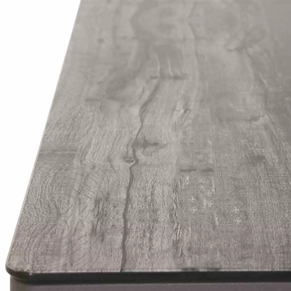 • Tischplatte aus mit Keramikpulver beschichtetem Glas in woodlook